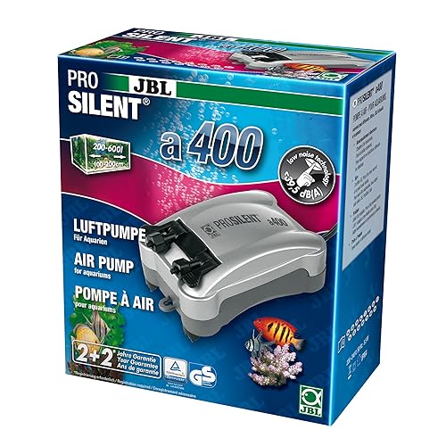 Ensure healthy oxygen levels in your aquarium with the JBL ProSilent Air Pump 400. Designed for tanks up to 400 liters, this pump combines high performance with ultra-quiet operation. Its vibration-free design prevents stress to fish while providing consistent air flow to air stones, filters, and ornaments. Energy-efficient and durable, the ProSilent 400 is perfect for both freshwater and marine aquariums, offering reliable aeration without disturbing your home or office.